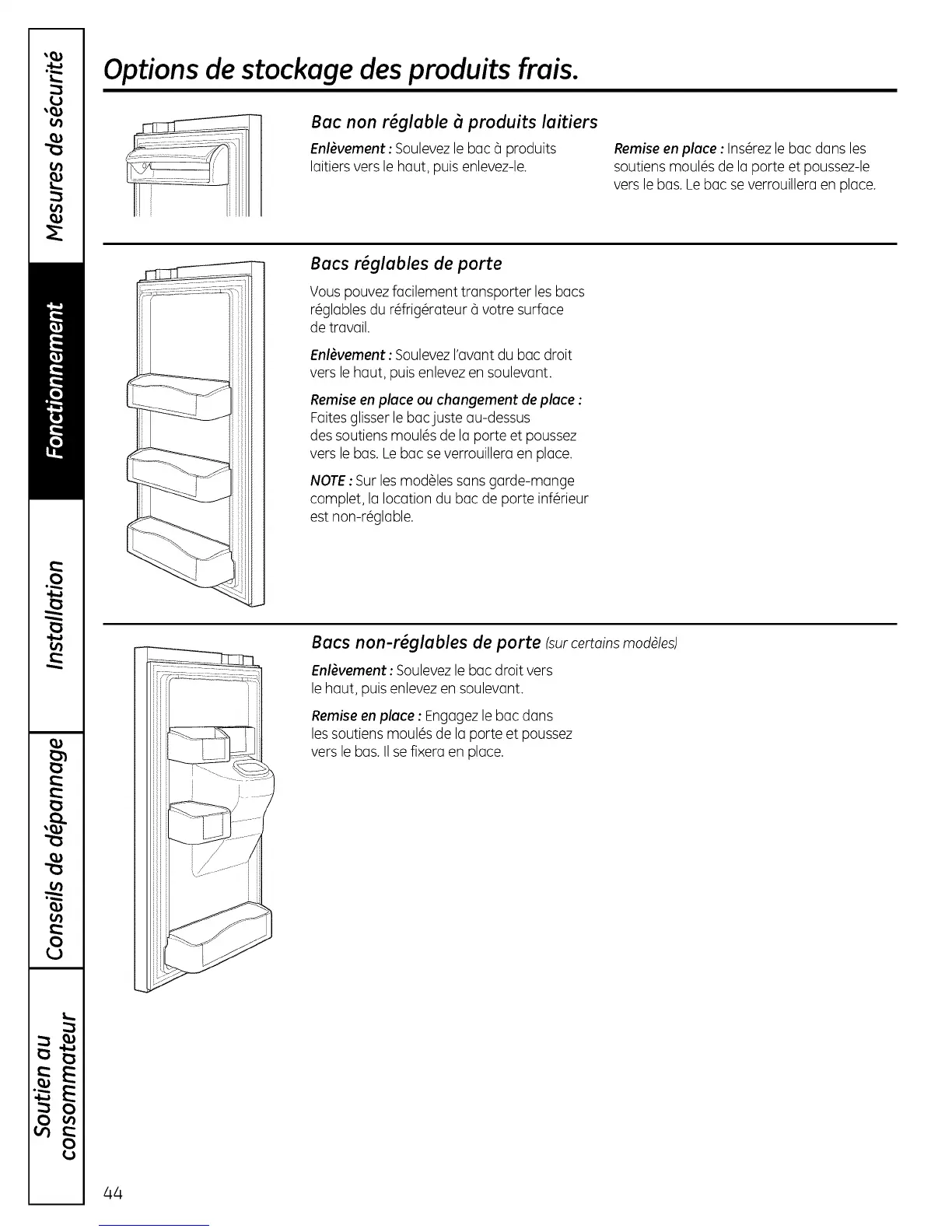 Bac non rgglable _ produits laitiers