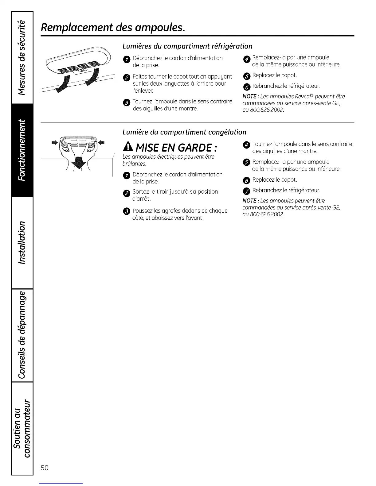Remplacementdes ampoules.