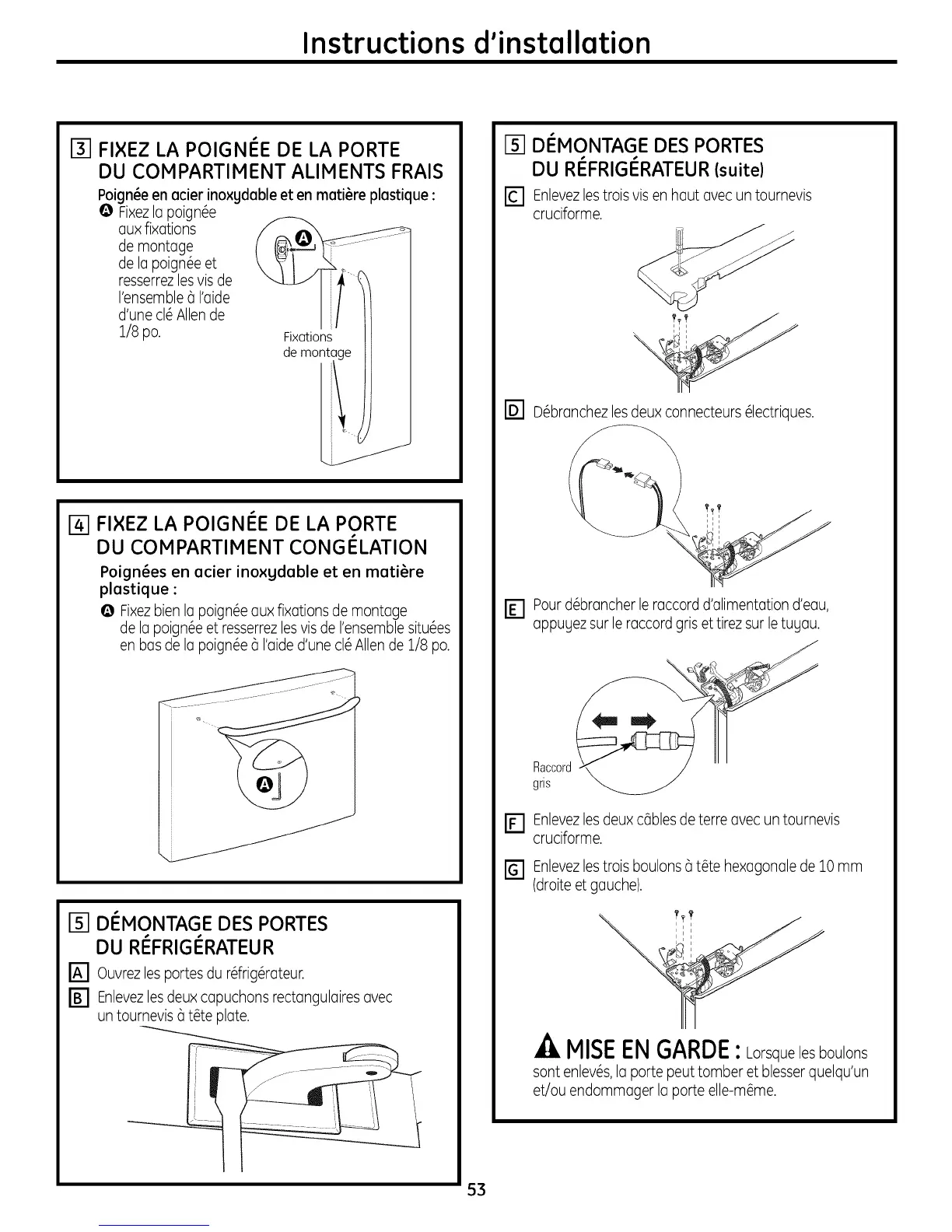 I%-IFIXEZ LA POIGNEE DE LA PORTE