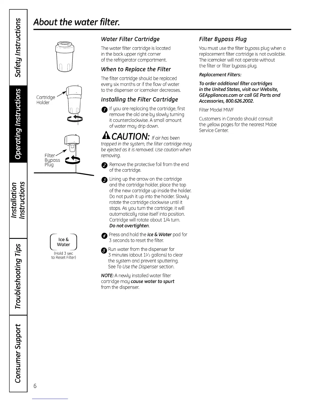 NOTE:A newly installed water filter