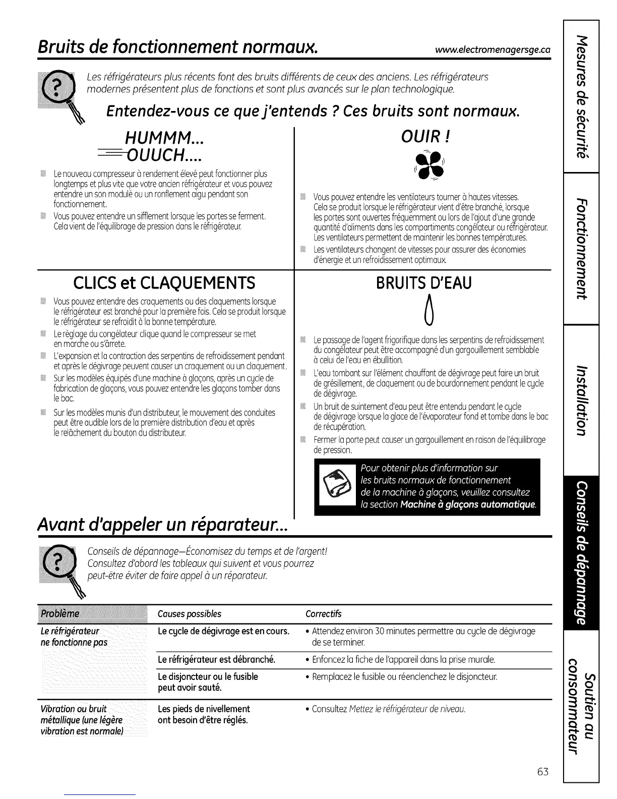 Bruits de fonctionnement normaux, www.electromenagersge.ca