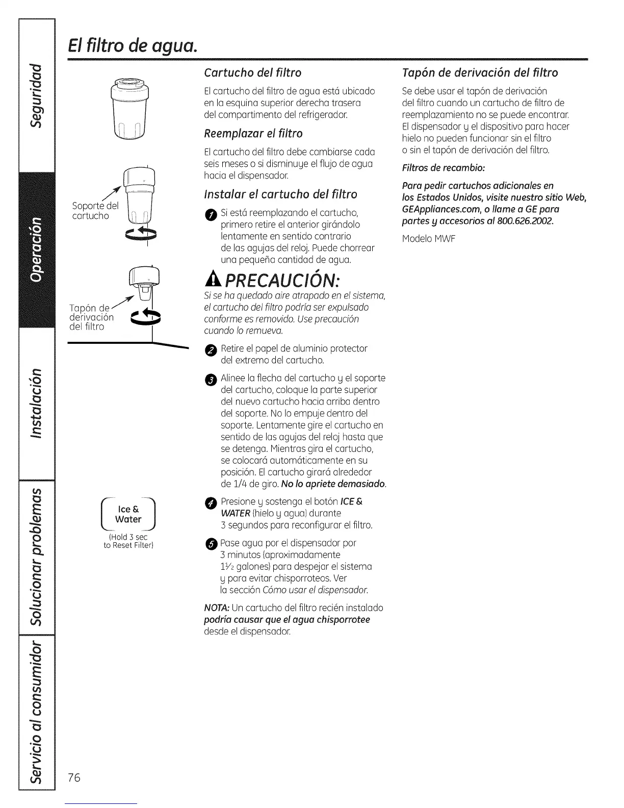NOTA:Un cartucho del filtro reci6ninstalado