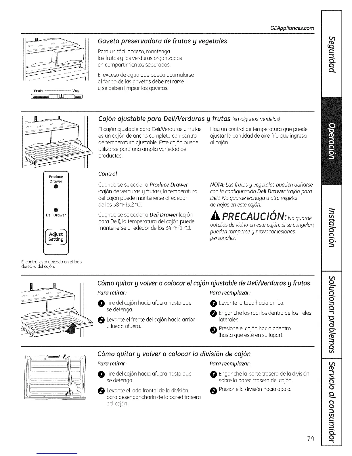 C6mo quitar g volver a colocar el caj6n ajustable de Deli/Verduras g frutas