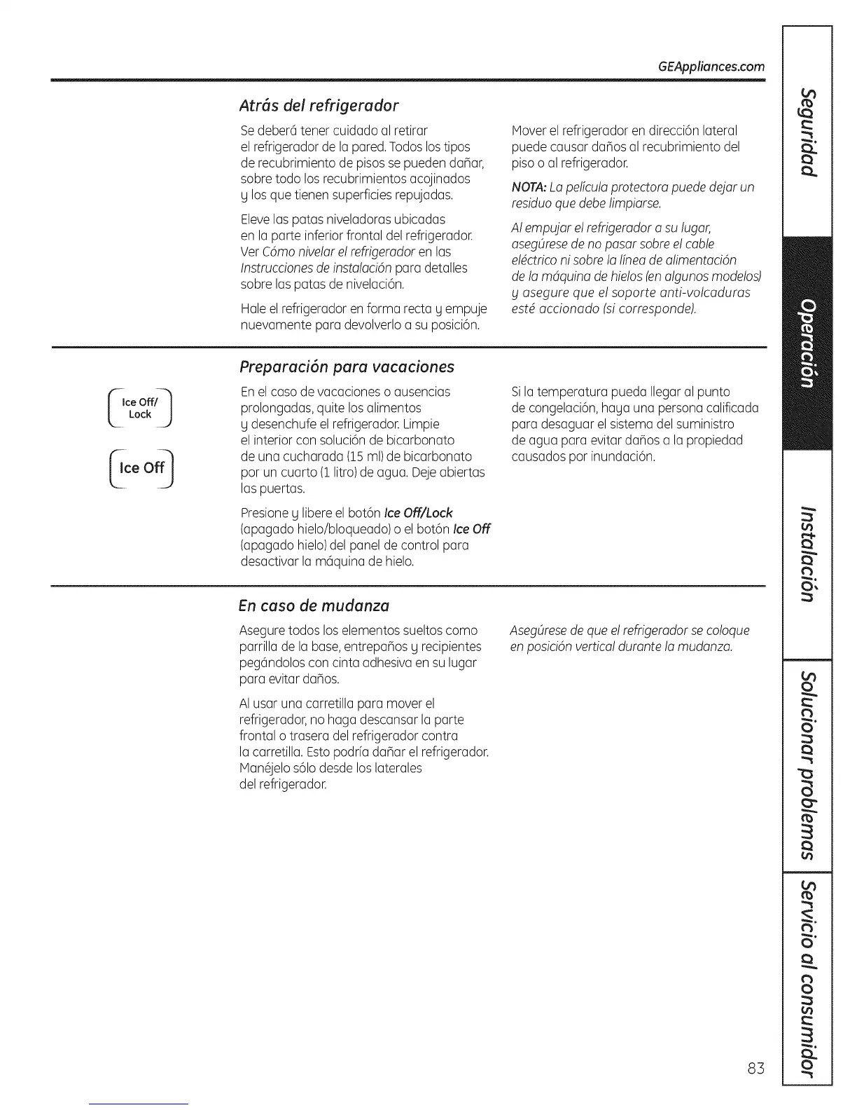 Mover el refrigerador en direcci6n lateral