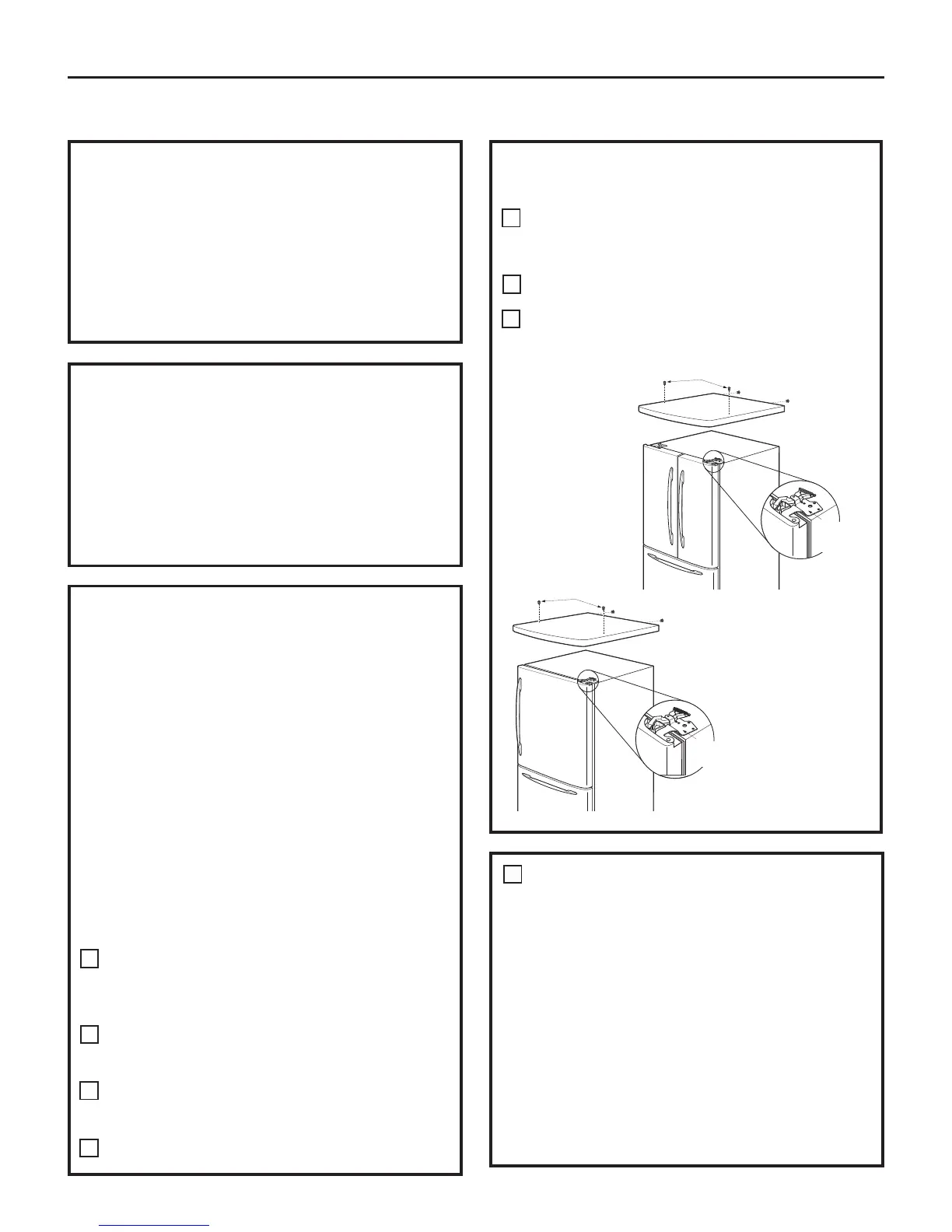 Place cap over the top of the refrigerator. Reinstall
