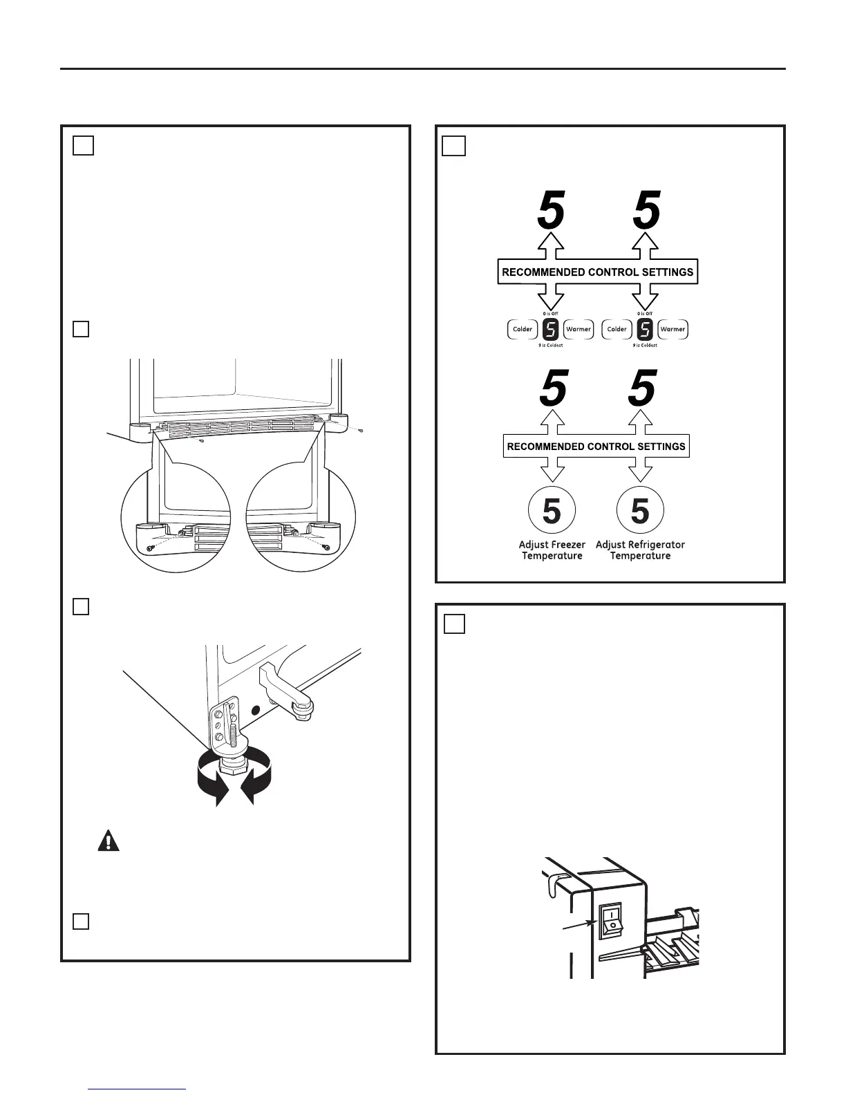 1) Leveling legs adjust so the refrigerator is