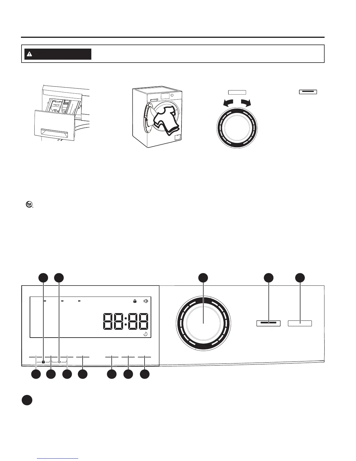 Appuyez pour activer l’affichage. Si l’affichage est actif, appuyez pour mettre la laveuse en mode d’attente.