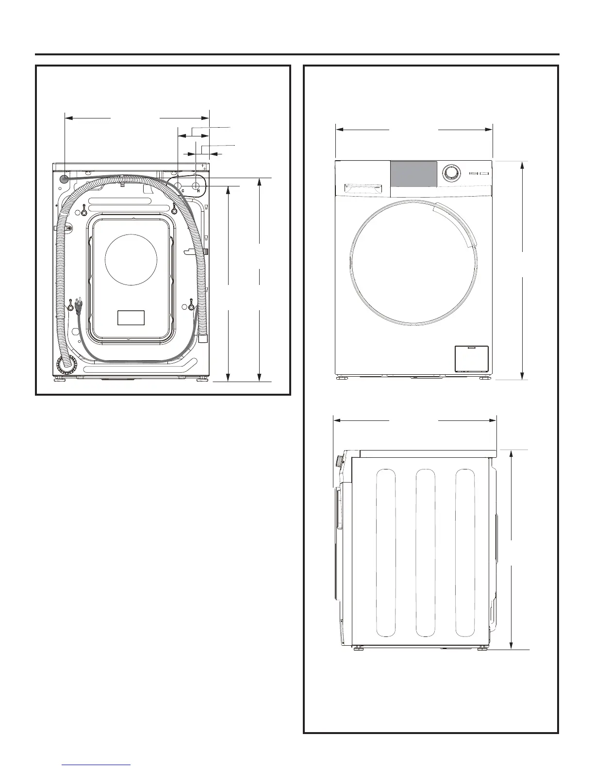 Patas niveladoras de la lavadora retraídas = 33-1/4”