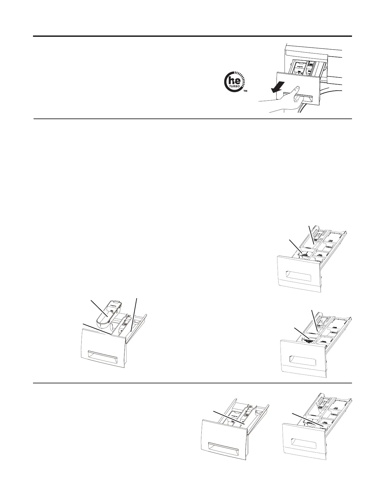 •  Detergent is flushed from the dispenser at the beginning of the wash cycle. Either powdered or liquid high-efficiency