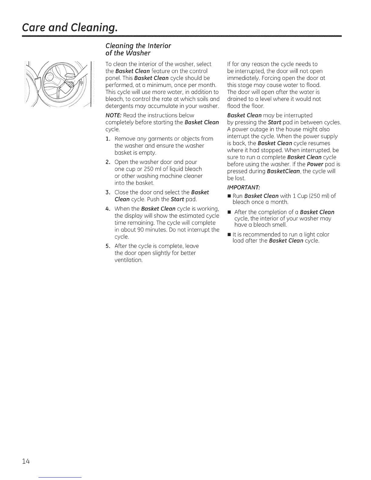 panel. This Basket Clean cycle should be