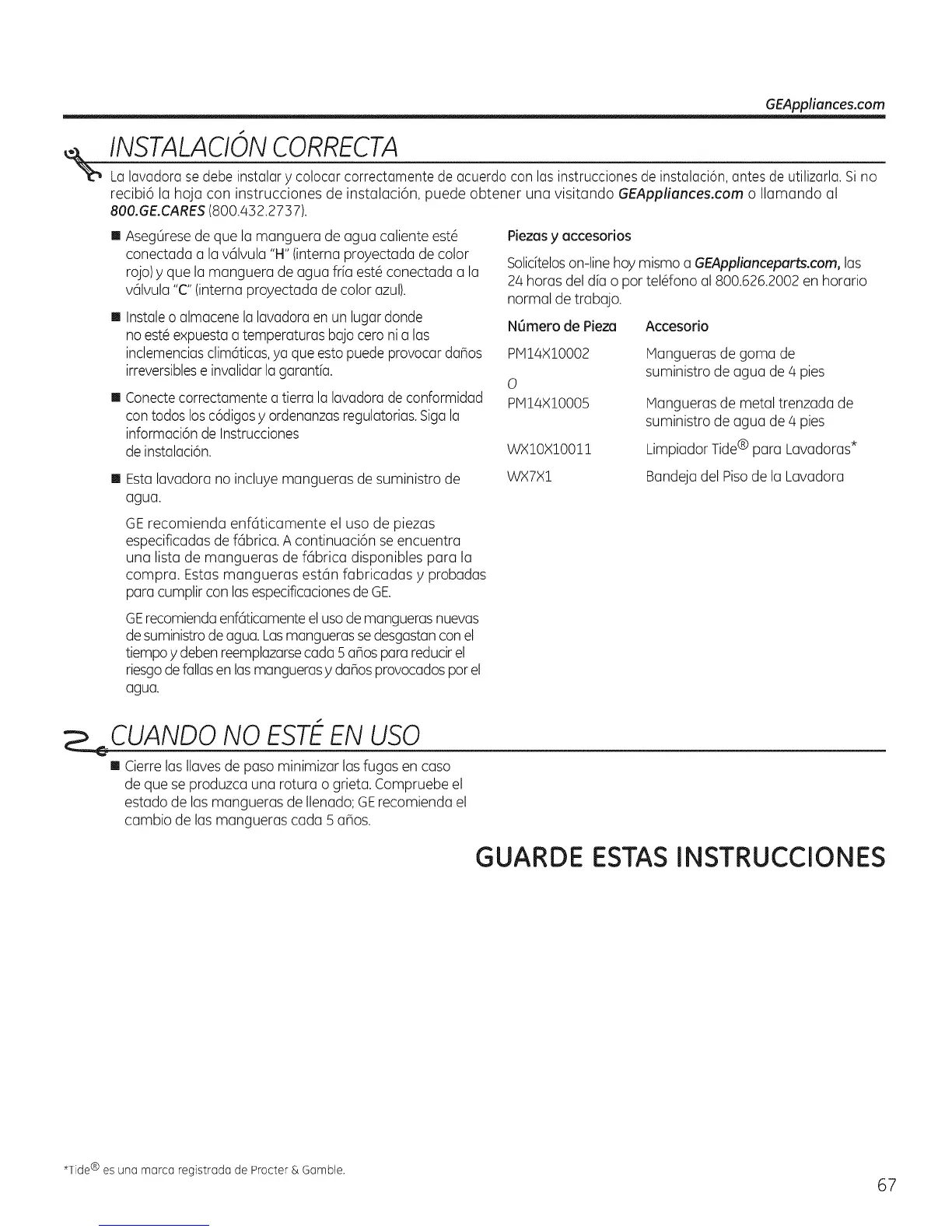 recibi6 la hoju con instrucciones de instalaci6n, puede obtener una visitando GEAppliunces.com o Ilamando al
