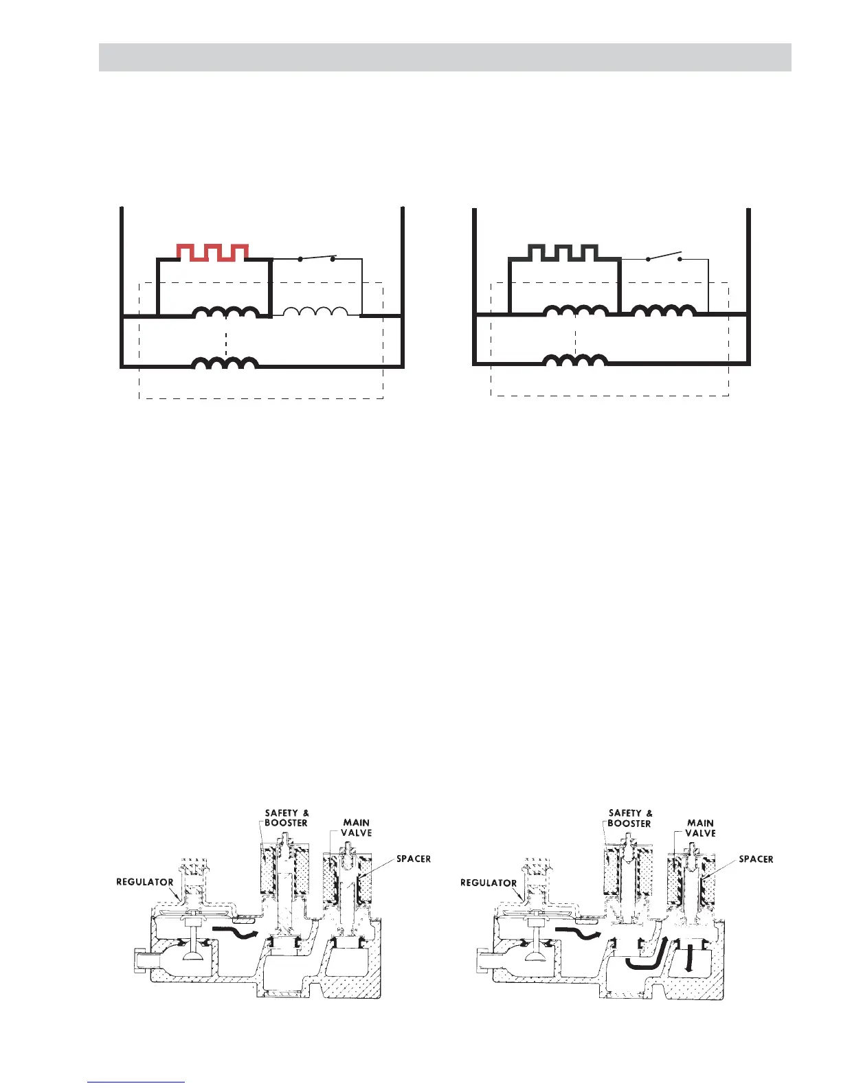 detector is held open by the radiant heat from the gas fl ame. The booster coil is now also in series with the