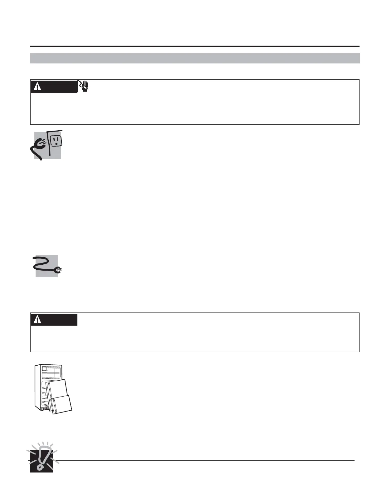 Le réfrigérateur doit toujours être branché à sa propre prise