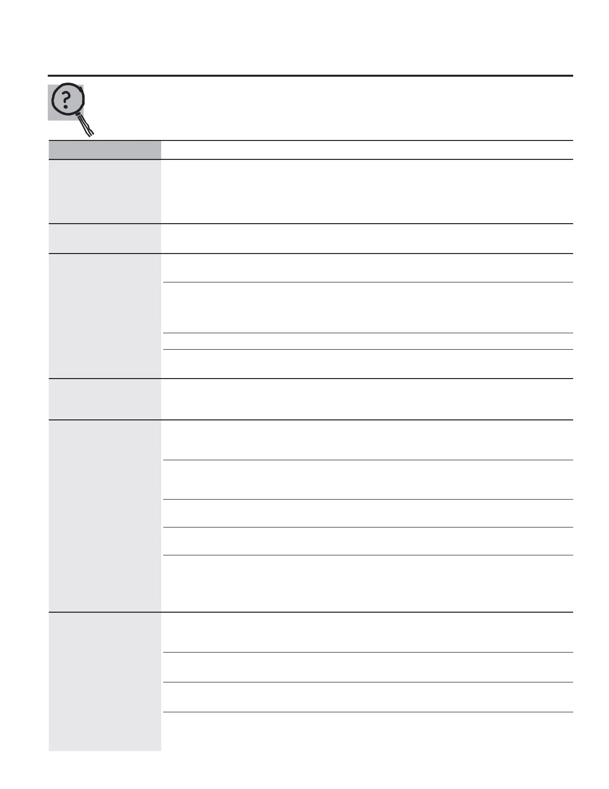 Vibrations ou bruits Le réfrigérateur ne se pose pas • Réglez les pieds d’inclinaison (Consultez Roulettes et