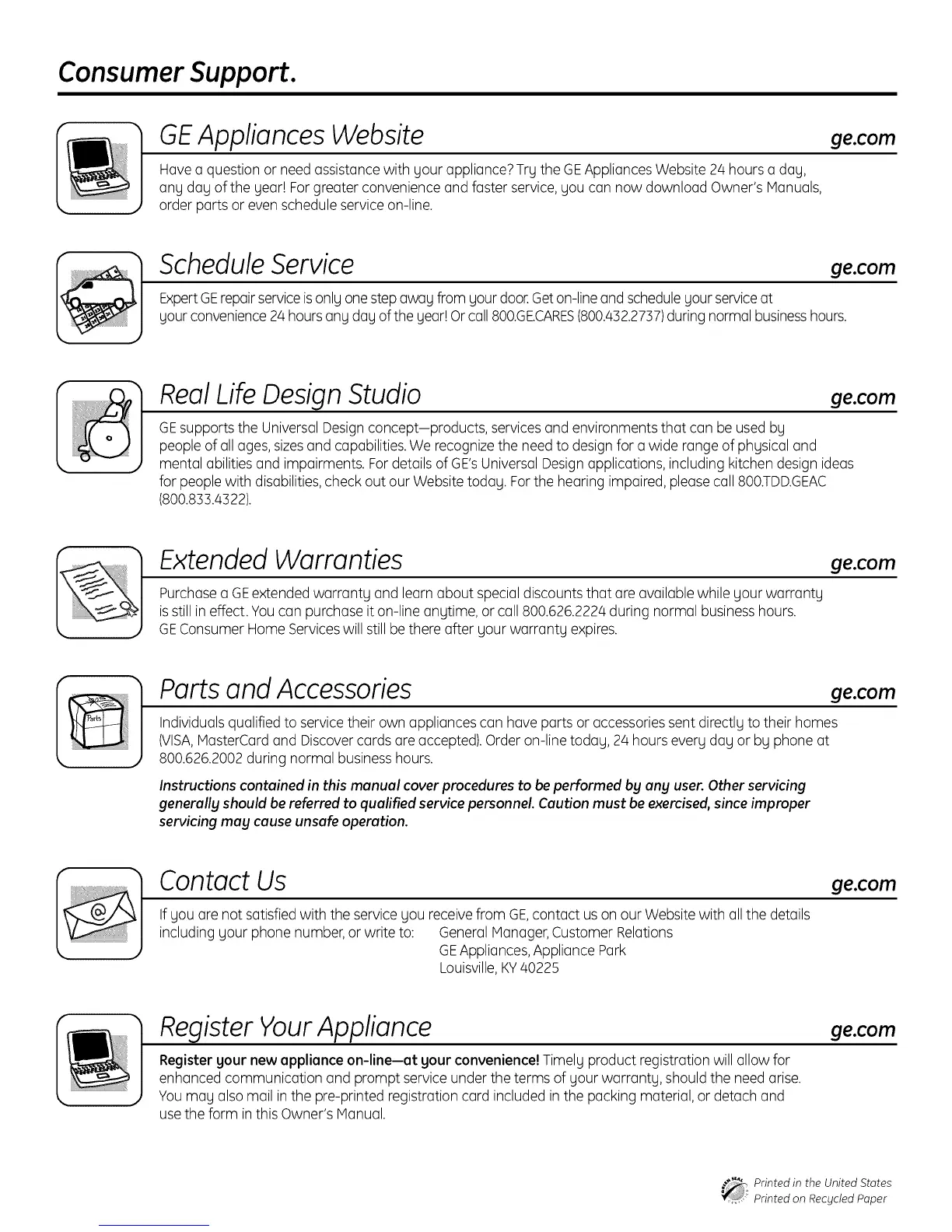 Have a question or need assistance with your appliance?Try the GEAppliances Website 24 hours a day,