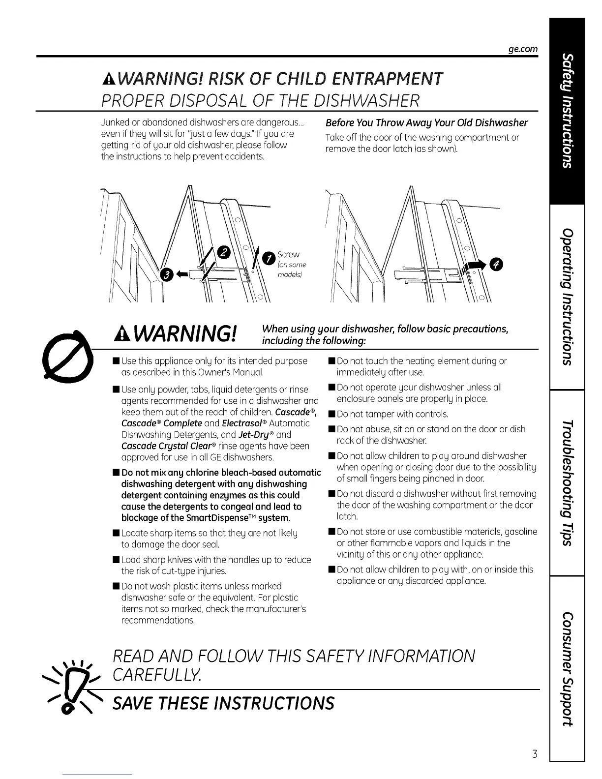 • Do not discord a dishwasher without first removing