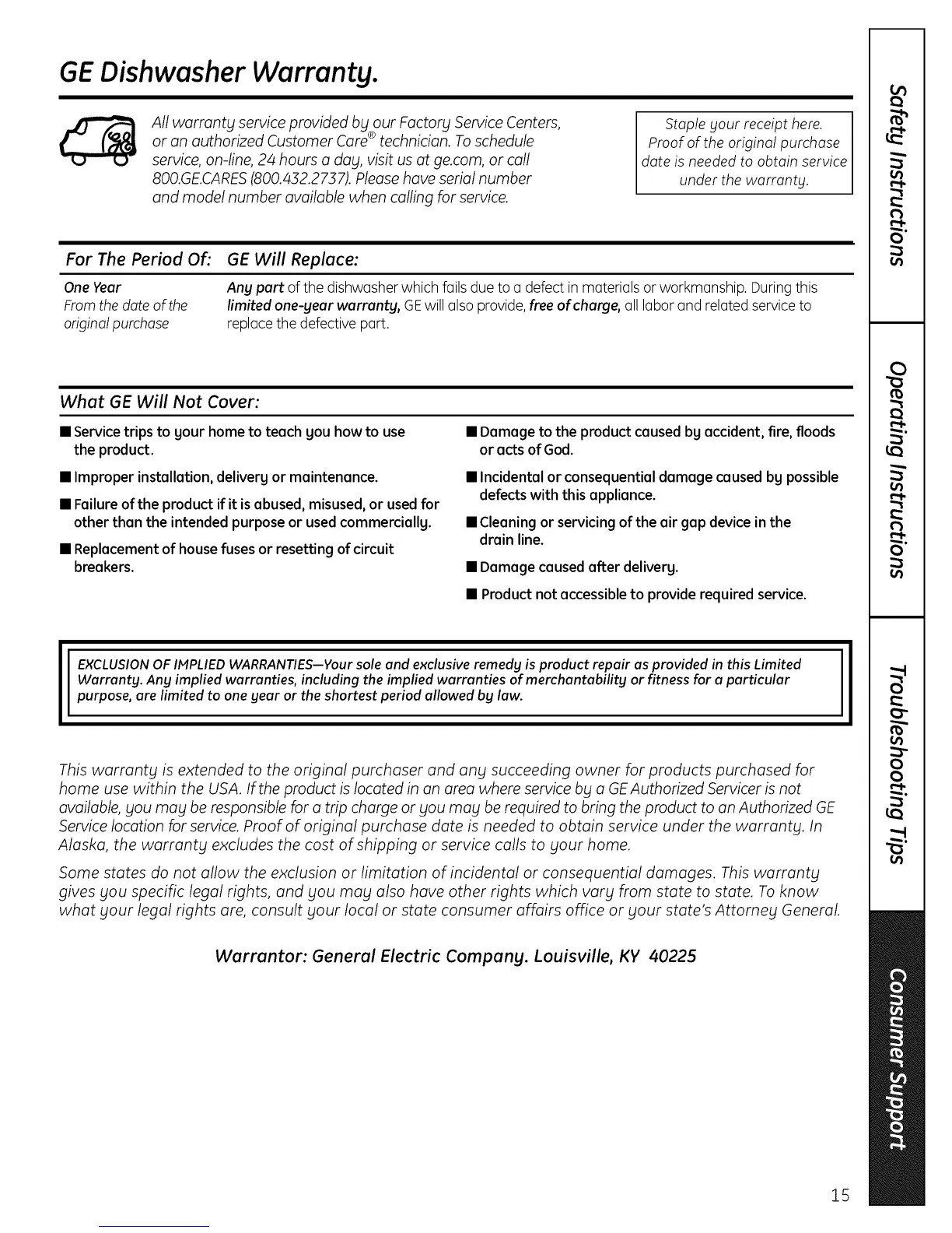 home use within the USA. If the product is located in on area where service by a GEAuthorized Servicer is not