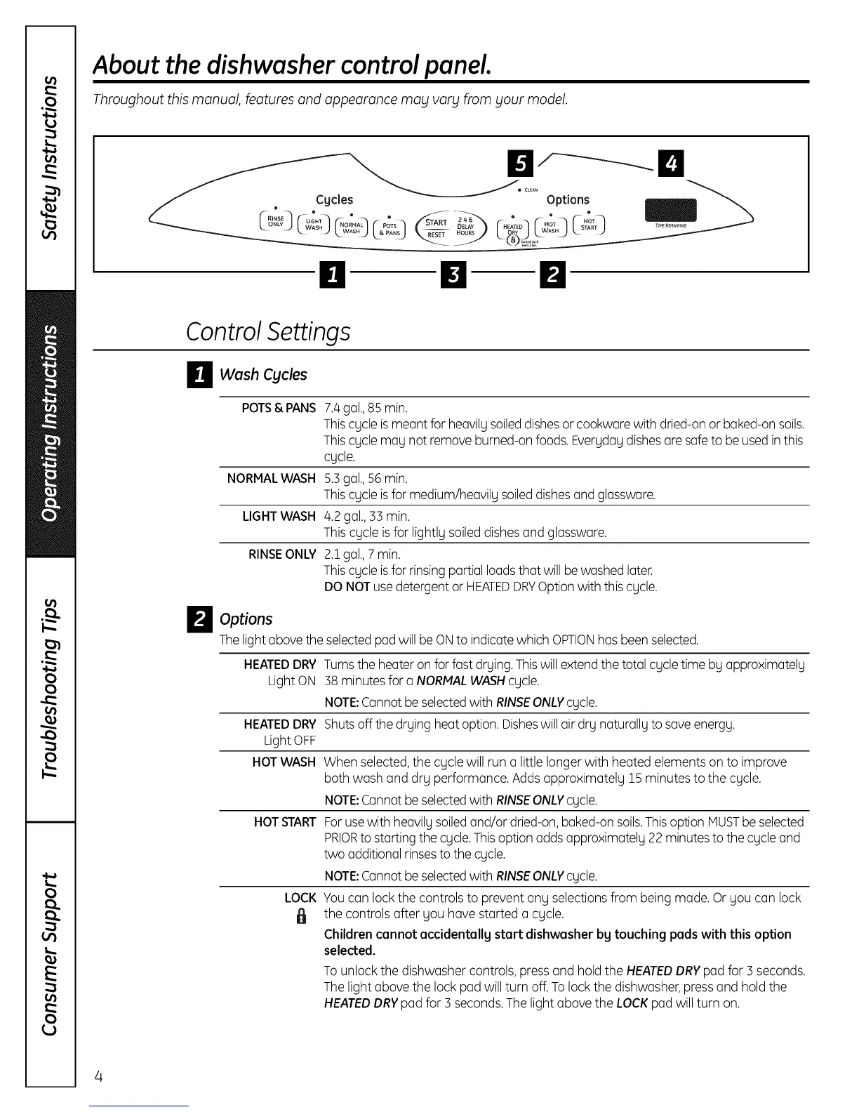 Children cannot accidentally start dishwasher bg touching pads with this option