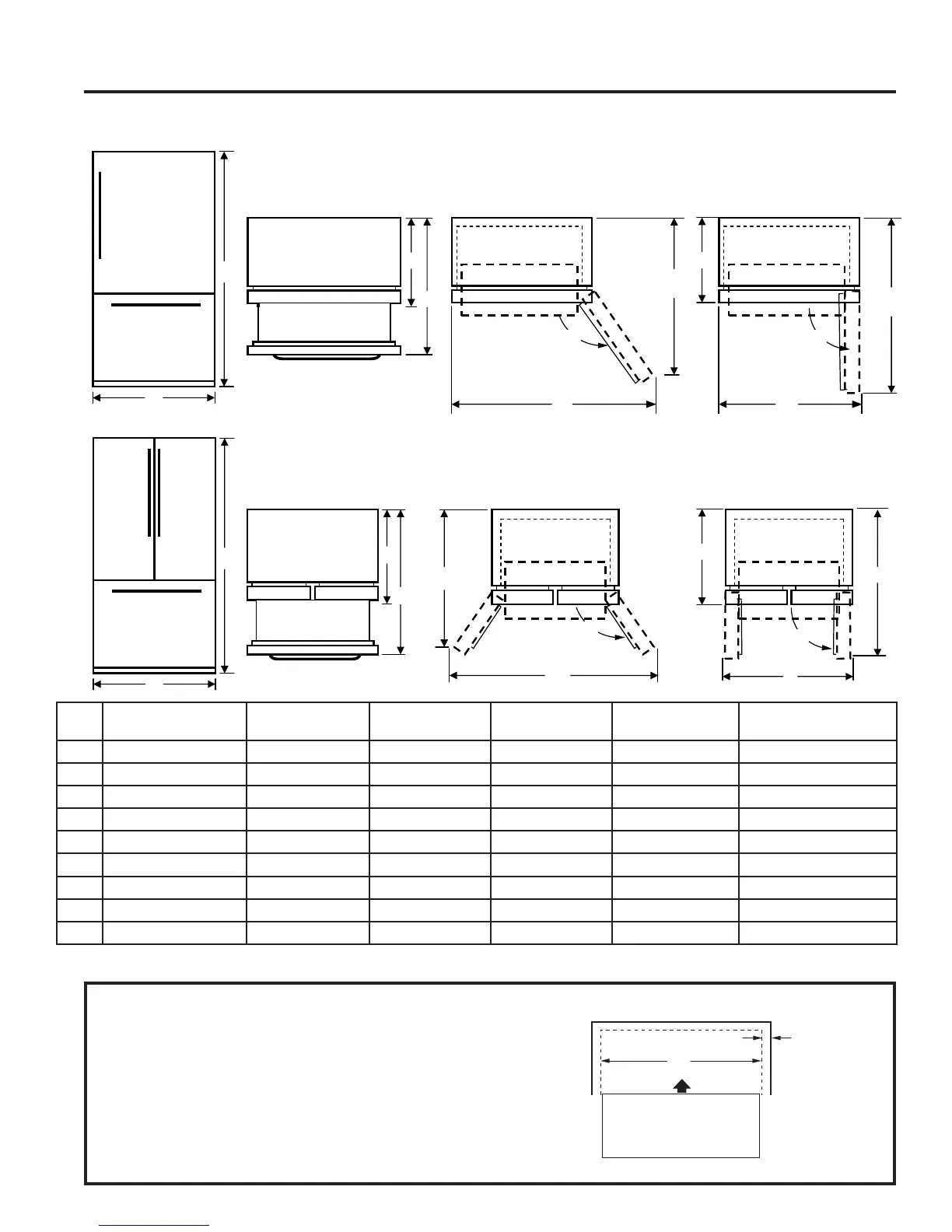 de la plinthe et de tout dégagement désiré. La largeur B ne doit pas être
