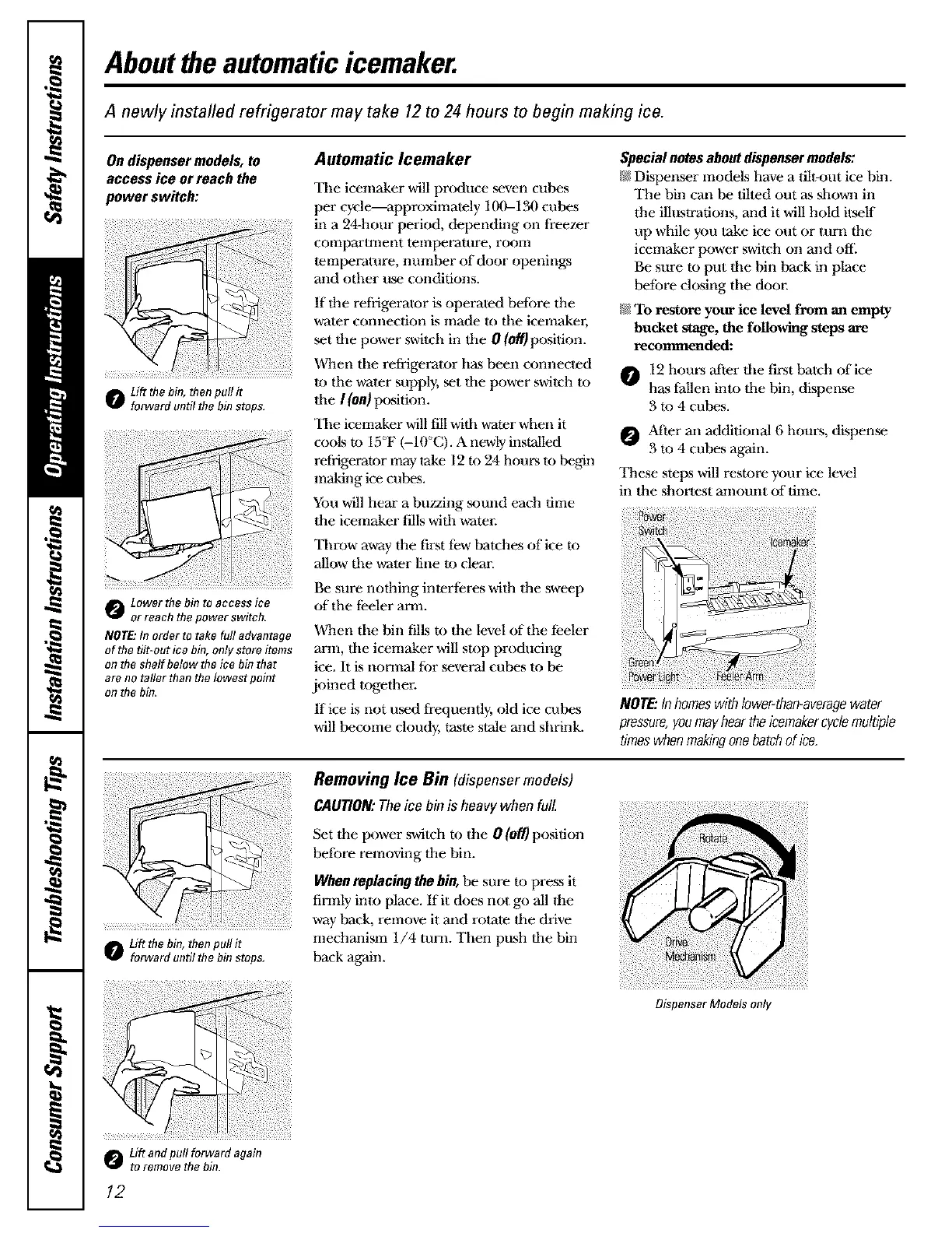 /;)_Dispenser Inodels have a tih-out ice bin.