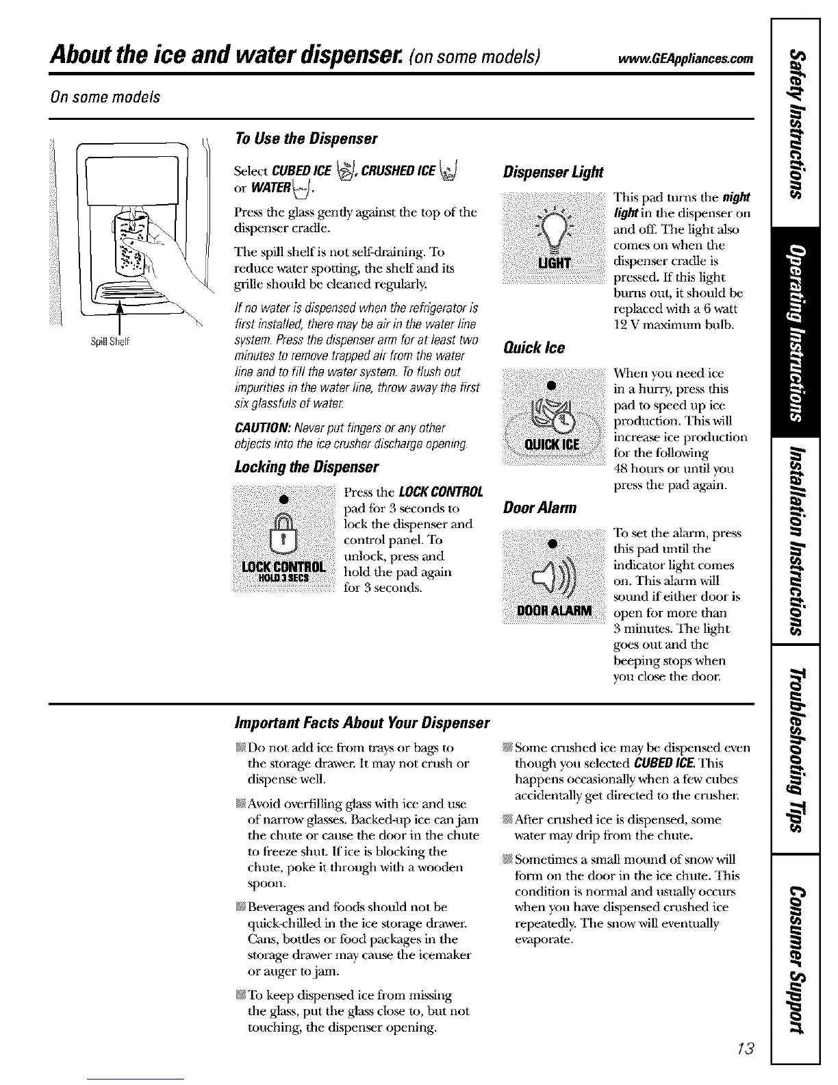 About the ice and water dispenser.(onsomemodels) wwvc.GEAppliances.com
