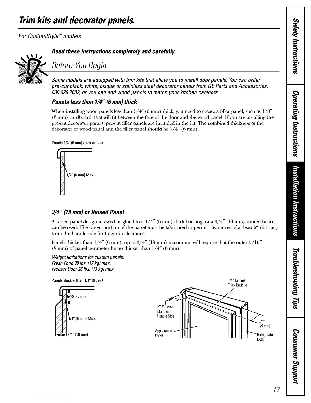 Panels Ihicker than 1/4" (6 ram), tip m 3/4" (19 • . • r. -,ram) maxmmm, wall reqmre that lhe outer :)/16