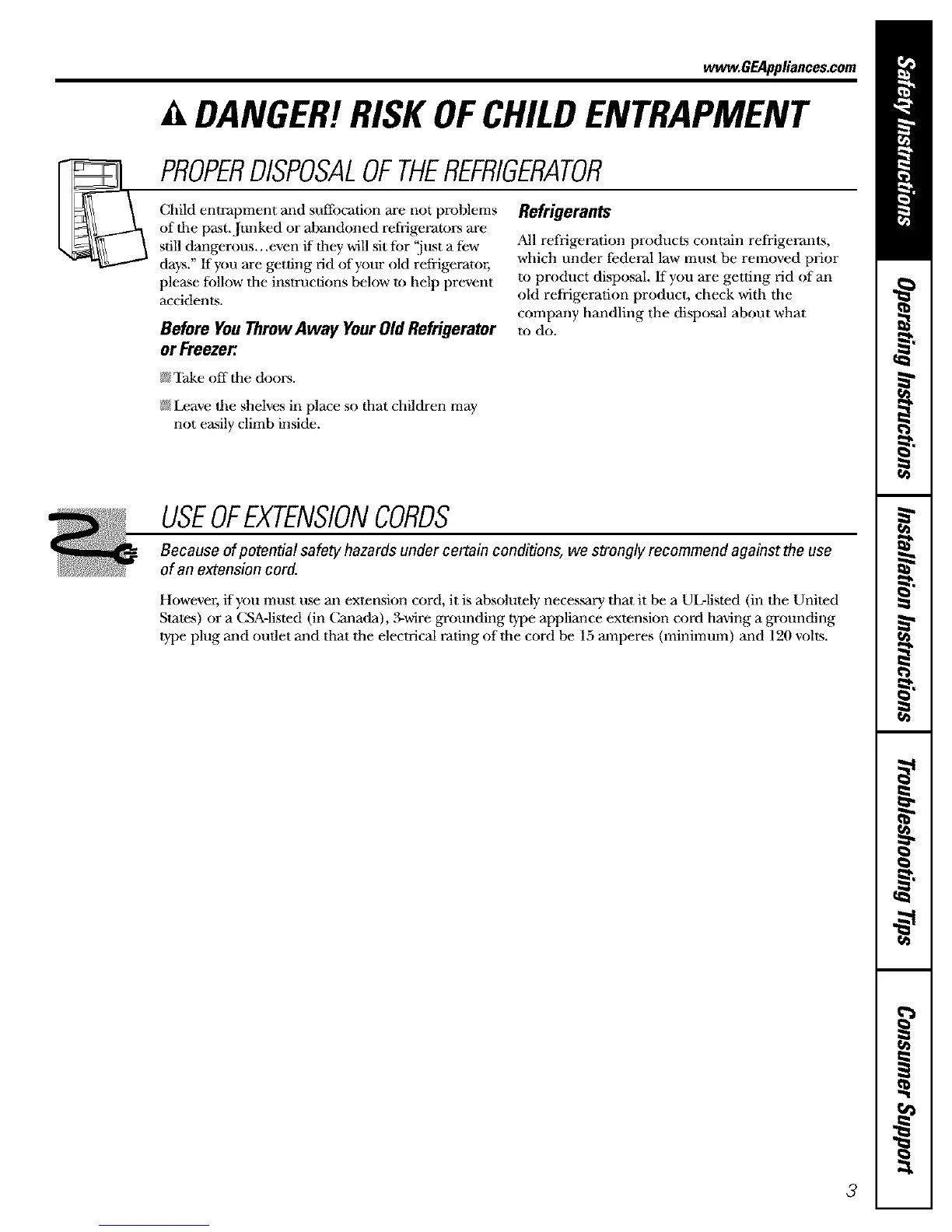 S ares) or a (_A-hsted (m Canada), 3-wire grounding type appliance extension cord having a grounding