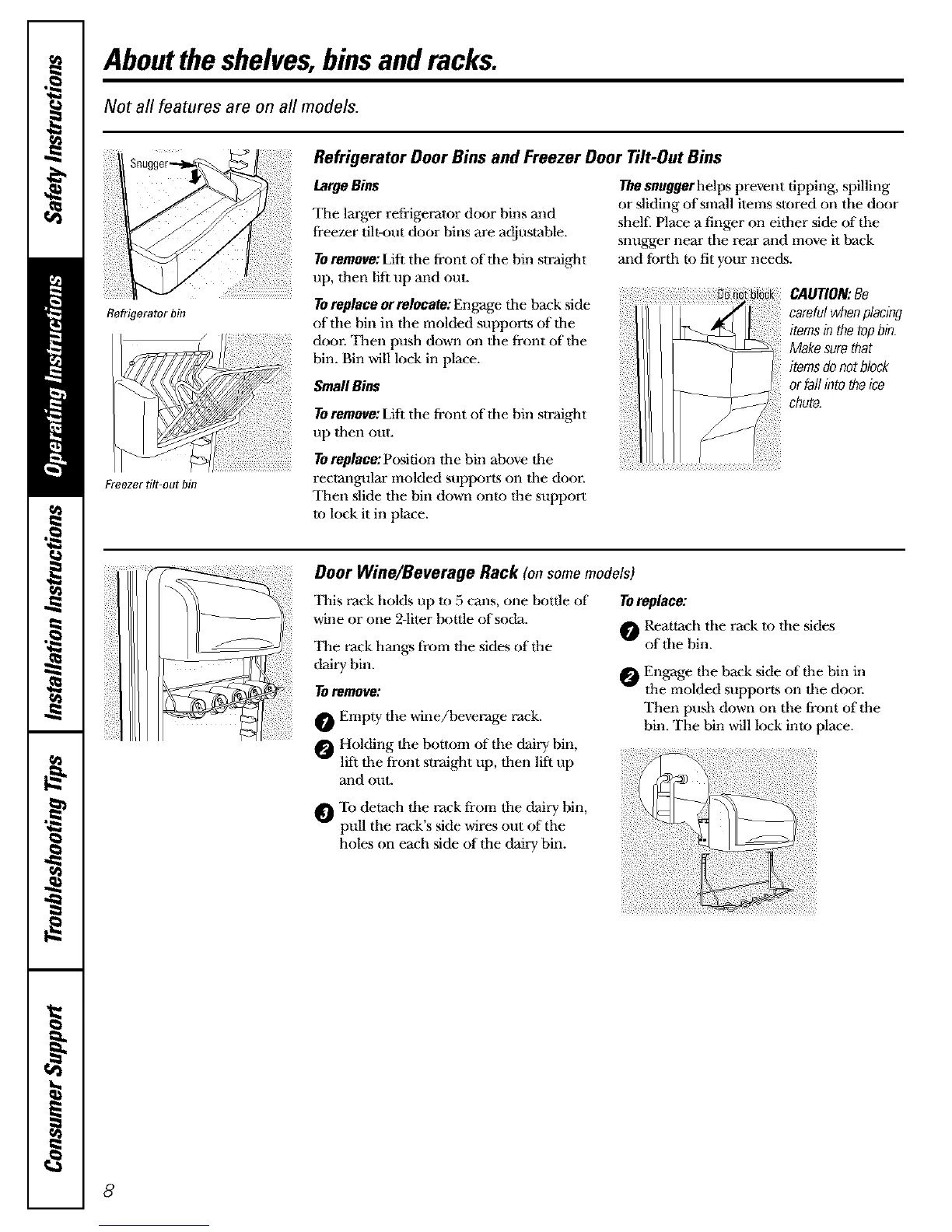Refrigerator Door Bins and Freezer Door flit-Out Bins