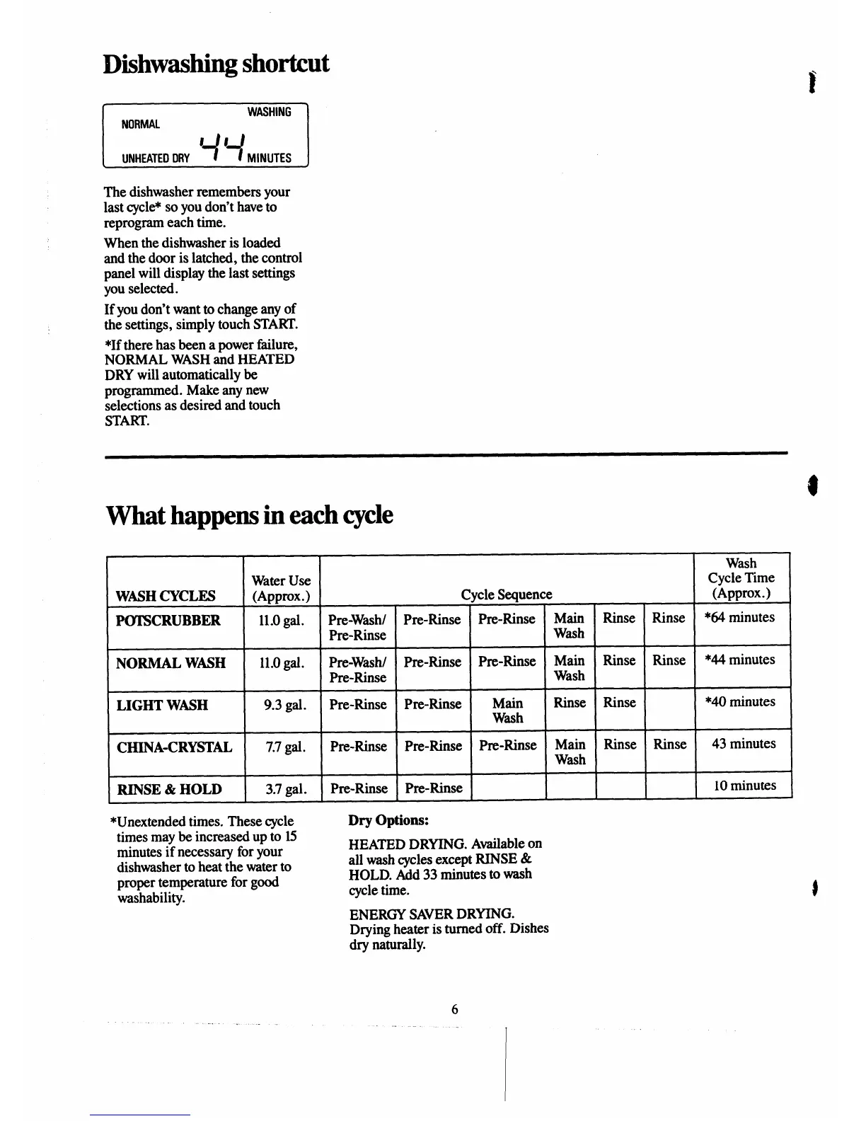 Pre-Washl Pre-Rinse Pre-Rinse Main Rinse Rinse *44 minutes