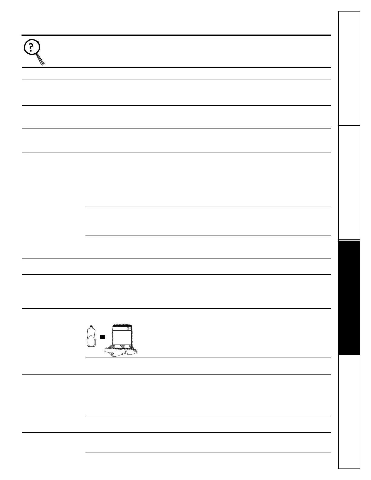 Suds in the tub Correct detergent • Use only automatic dishwasher detergents to avoid sudsing.