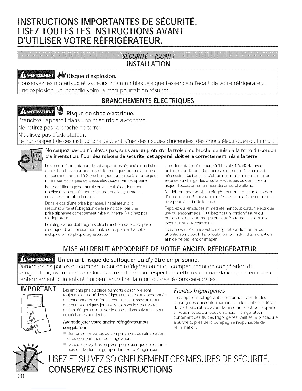 refrigerateur, avant mettre celui-ci au rebut. Le non-respect de cette recommandation peut entrainer