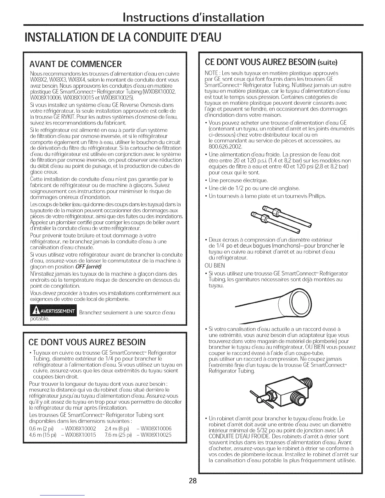 . Tuyaux en cuivre ou trousse GE SmartConnect" Refrigerator
