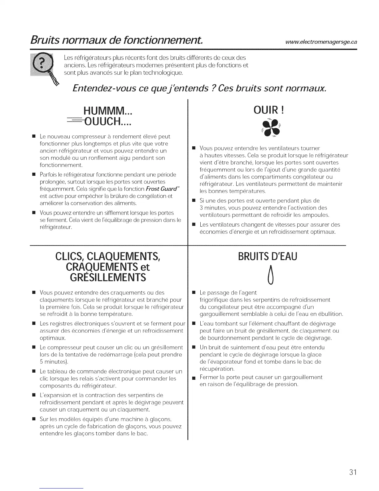Bruits normaux de fonctionnement, www.electromenagersge.ca
