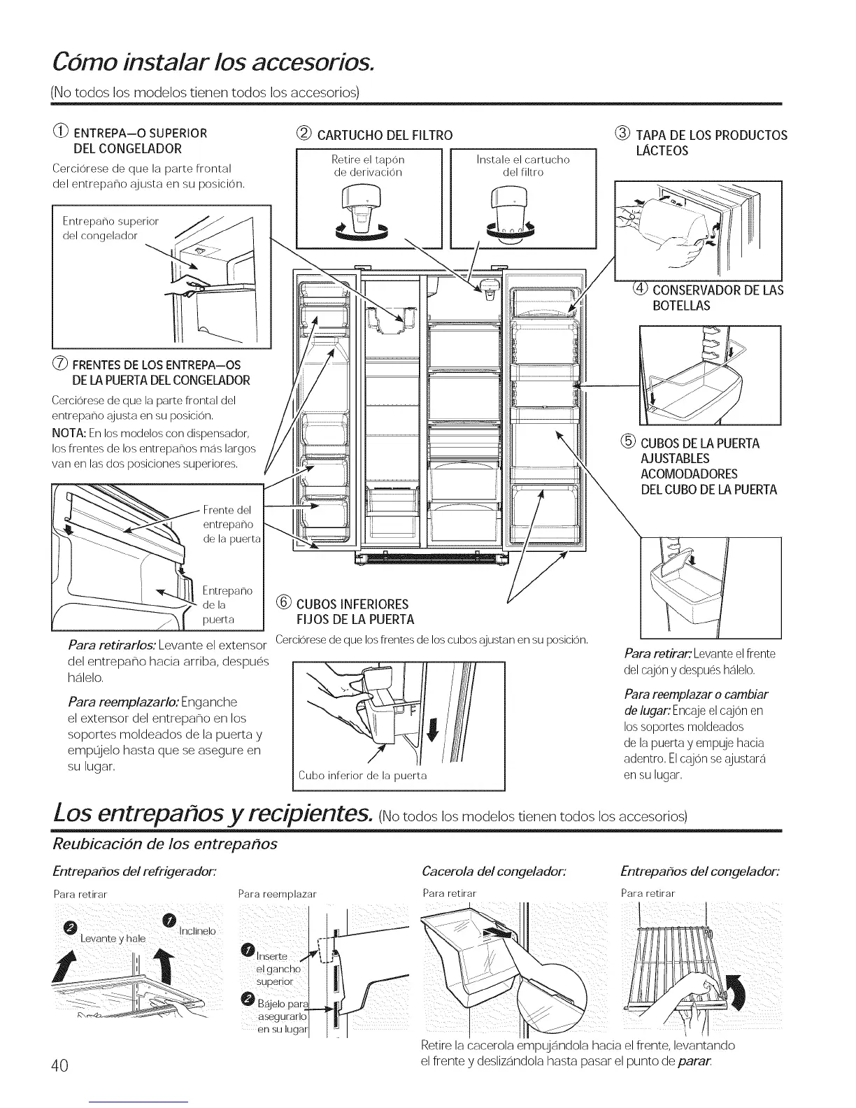Los entrepa#os y recipientes. (No todos los modelos tienen todos los accesorios)