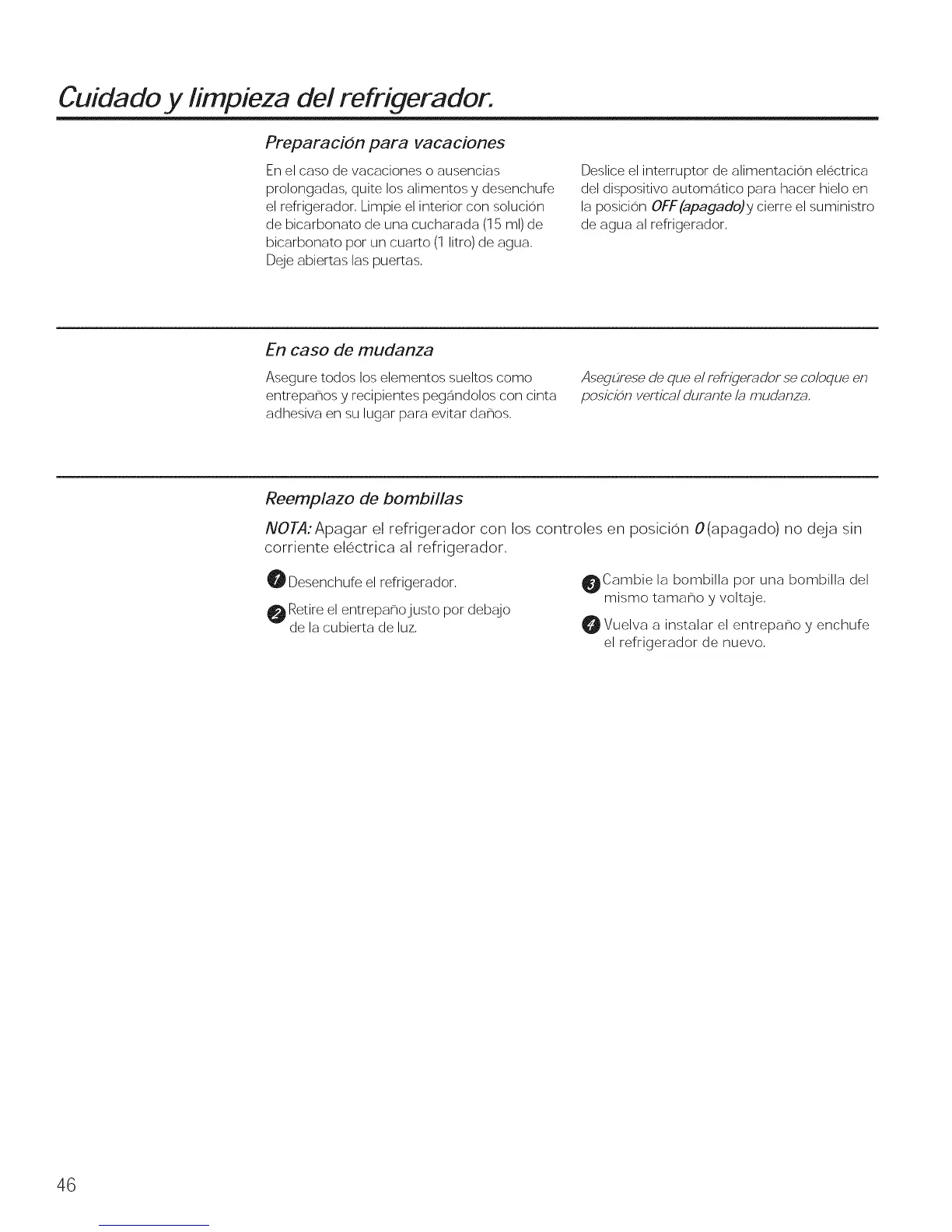 NOTA:Apagar el refrigerador con los controles en posicion O(apagado) no deja sin