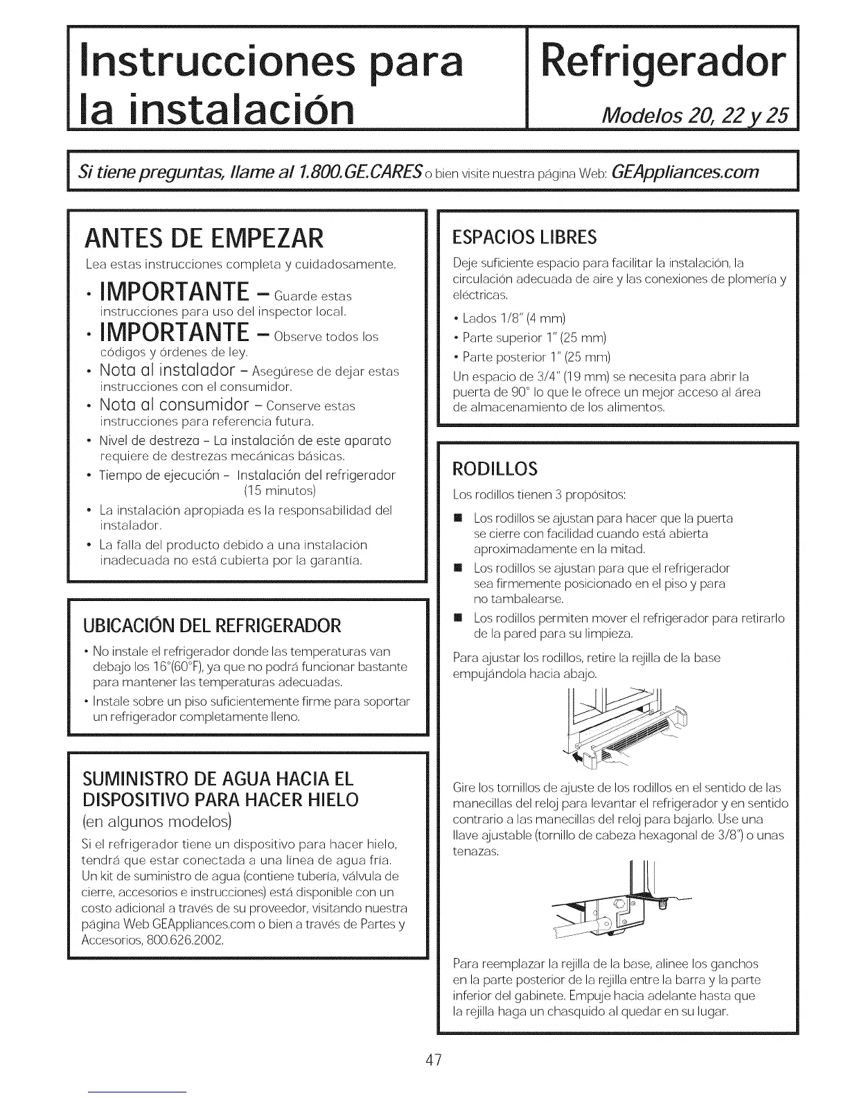 Si tiene preguntas, Ilame al 1.800.GE.CARES obienvisitenuestra paginaWeb:GEAppliances.com !