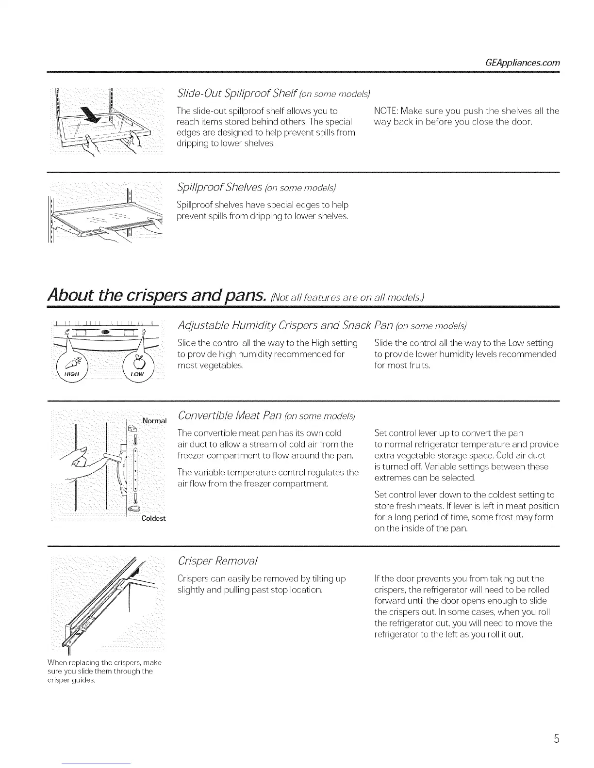 Adjustable Humidity Crispers and Snack Pan (on some models)