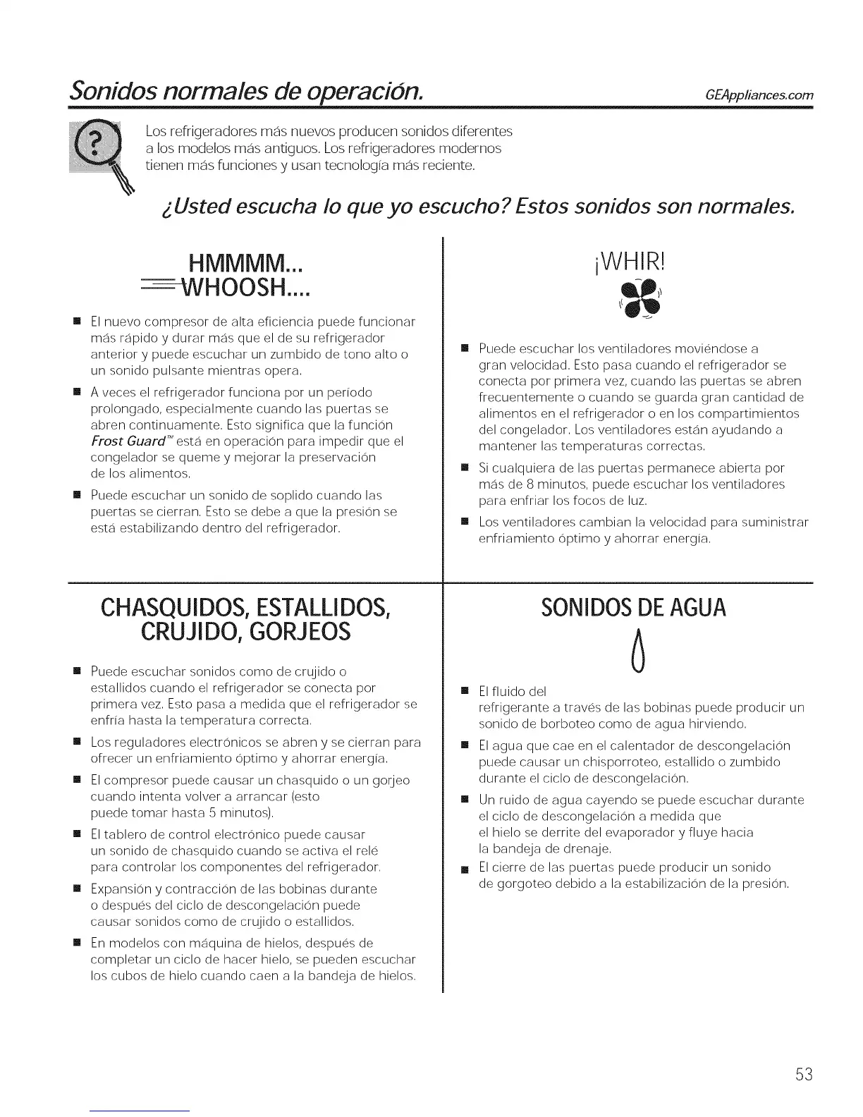 Sonidos normales de operacion. GEAppliances.com