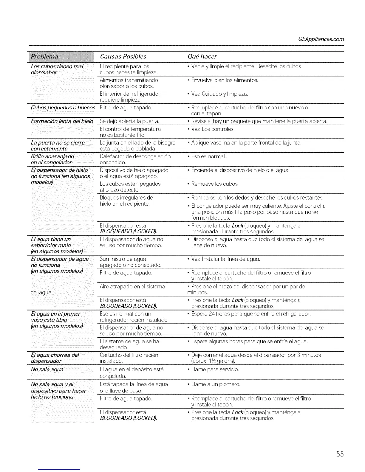 El dispensador esta , Presione la tecla Lock(bloqueo) y mantengala