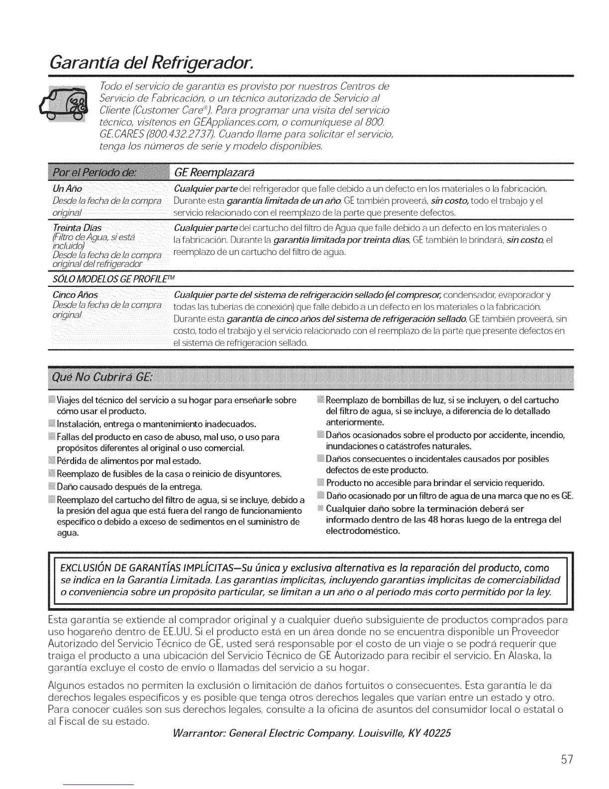 ,_Filtrode Agua, d esta la fabricacion. Durante la garanda /imitada por treinta alias,GE tambien le brindar& sin costo, el