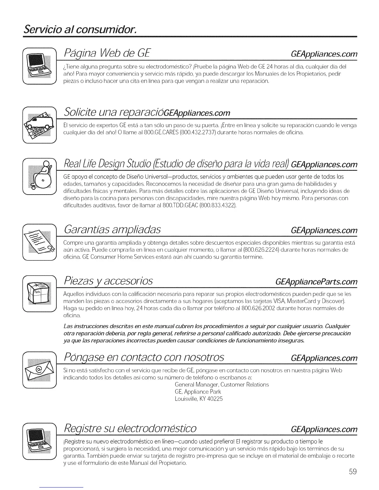 Si no esta satisfecho con el servicio que recibe de GE,pongase en contacto con nosotros en nuestra pagina Web
