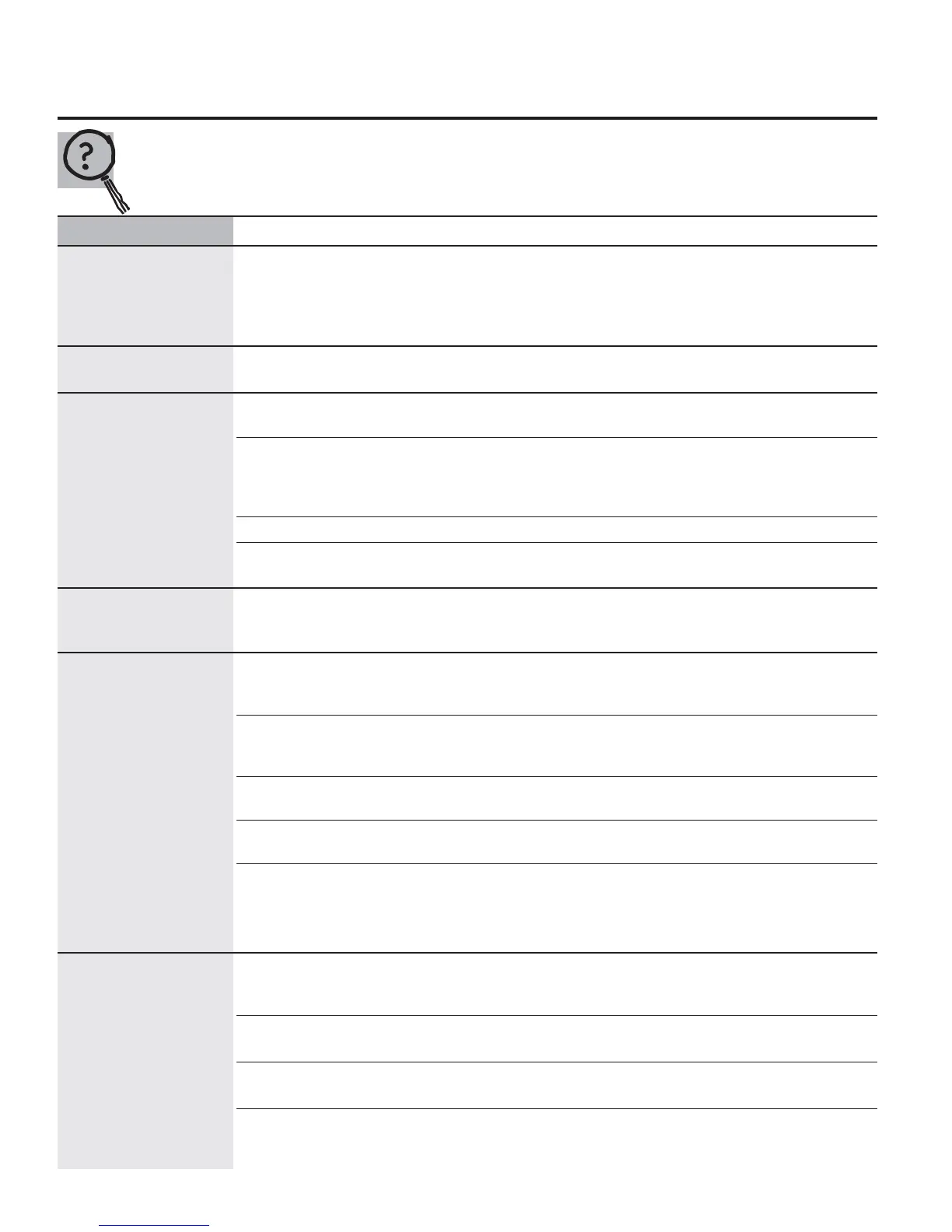 Vibrations ou bruits Le réfrigérateur ne se pose pas Réglez les pieds d’inclinaison (Consultez Roulettes et