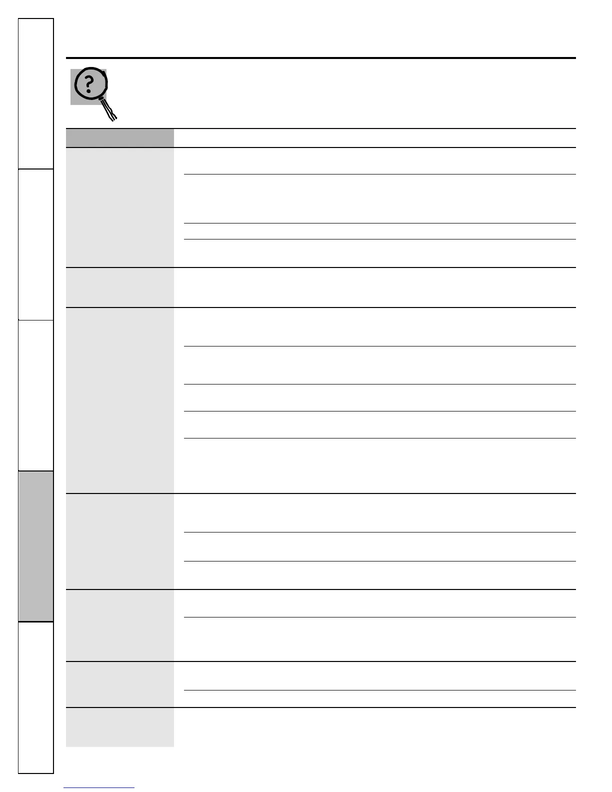 La lumière intérieure Pas d’électricité à la prise. •Remplacez le fusible ou remettez en marche le