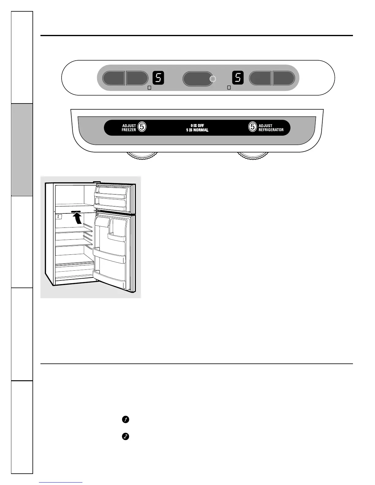 Inicialmente, fije el control del refrigerador en 5 y el control del