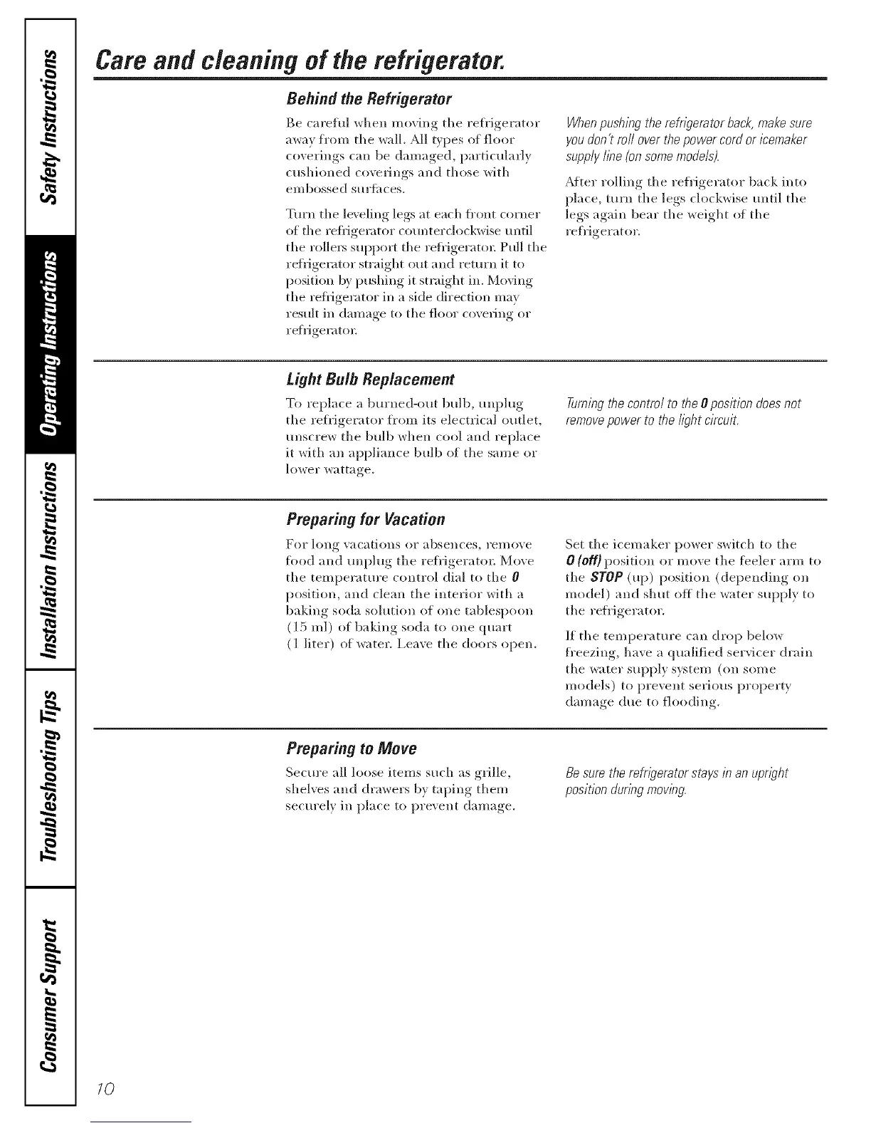 Care and c/eanino of the refrigerator.