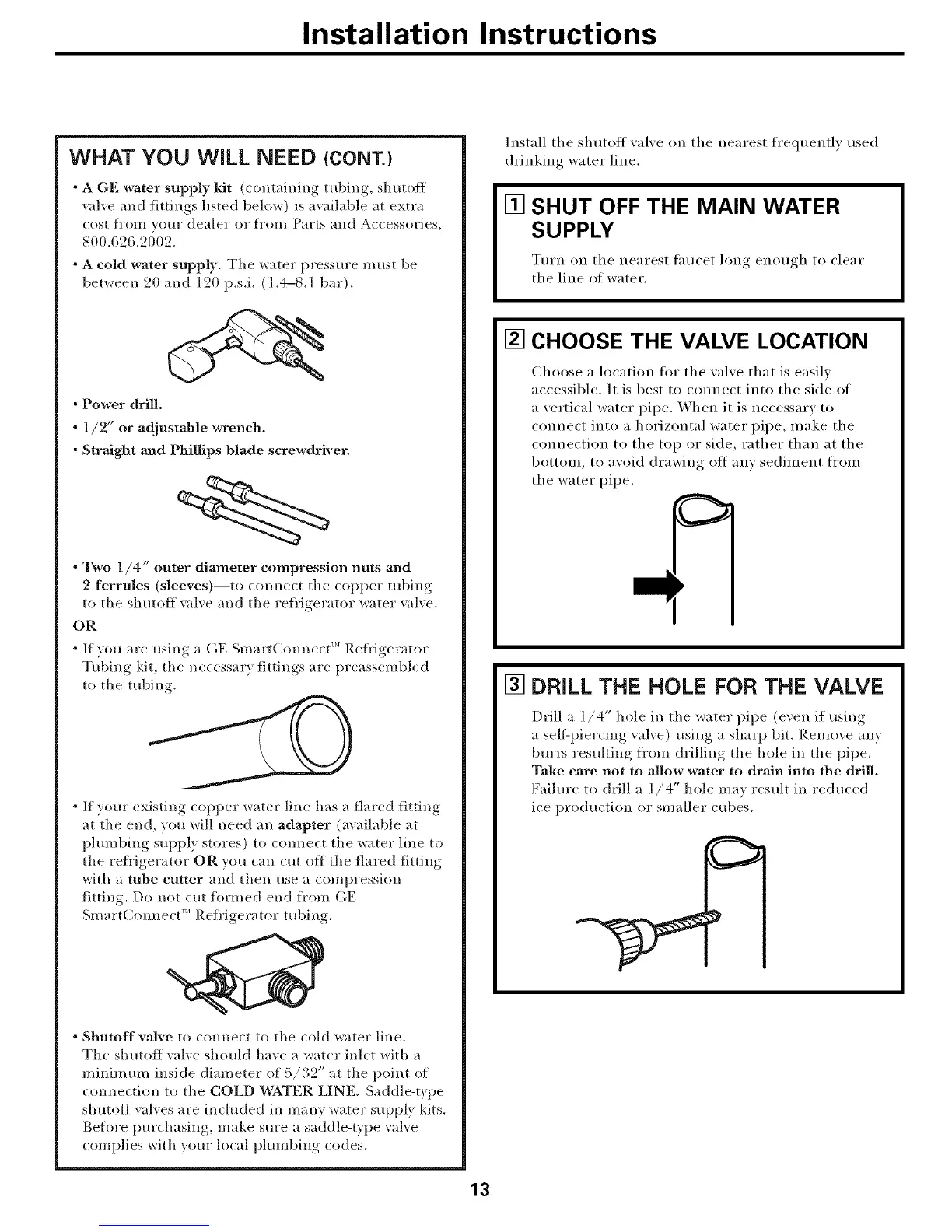 • A GE water supply kit (containing tubing, shutoff