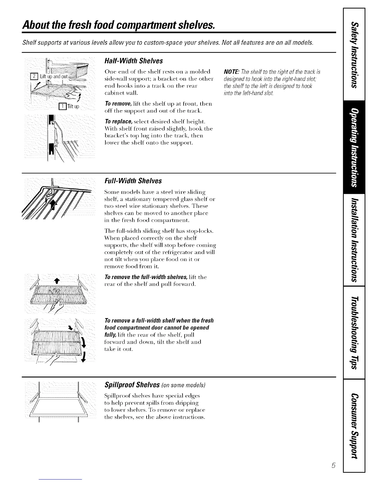 Shelf supports at various levels allow you to custom-space your shelves. Not all features are on all models.