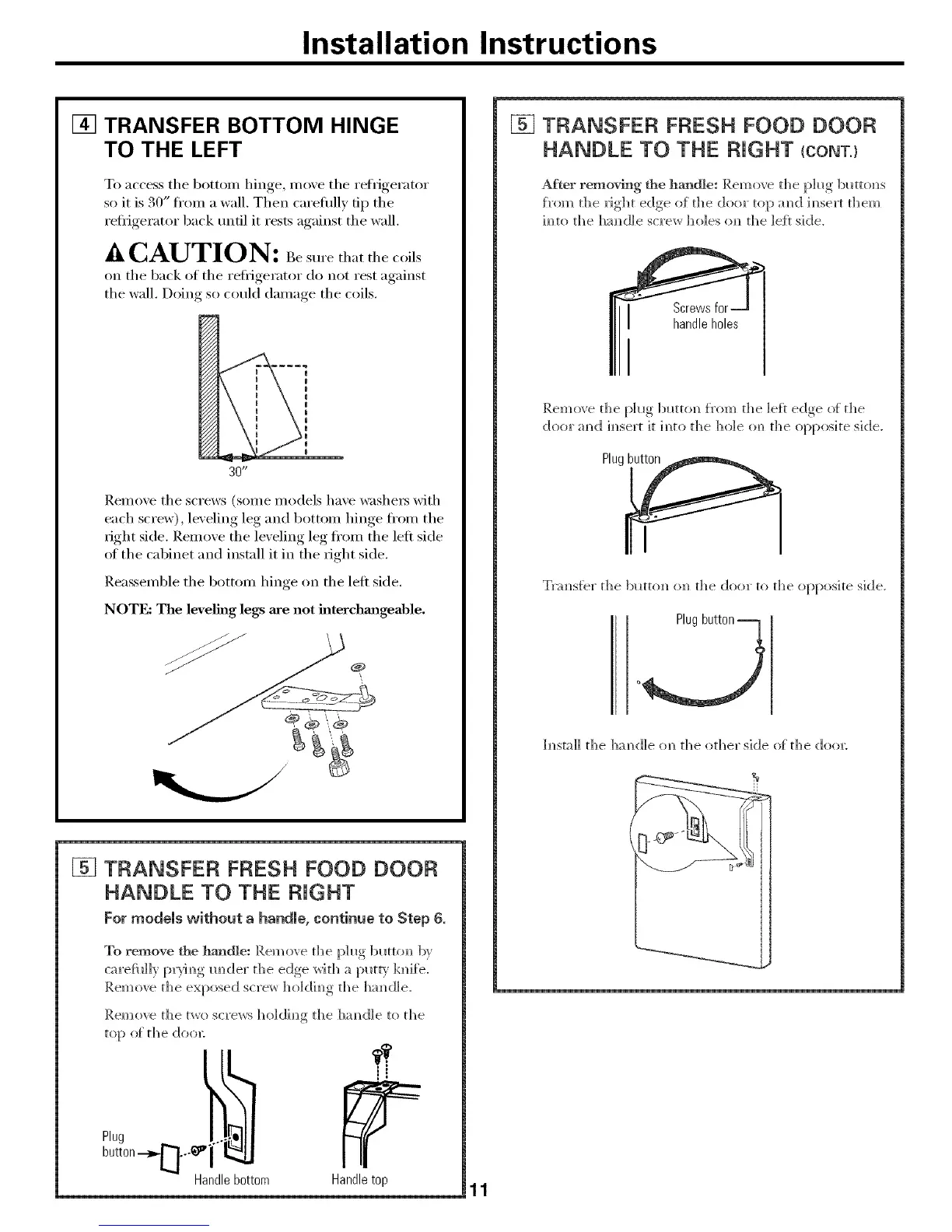 each screw), leveling leg and bottom hinge fl'om the