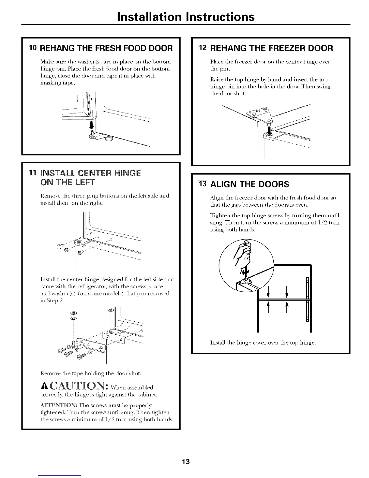 Place the fl'eezer door ou the ceuter hiuge over