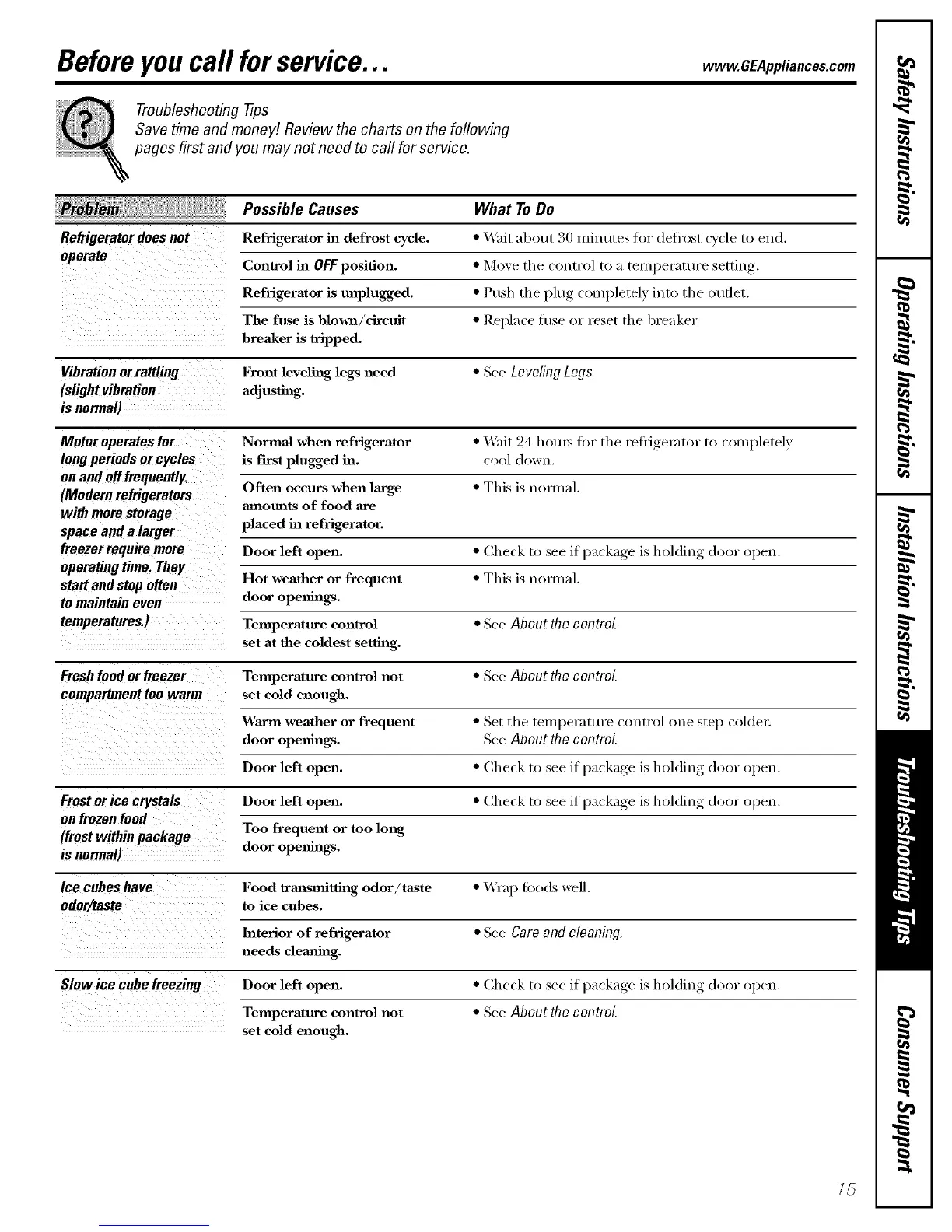 Vibration orrattling Front leveling legs need * See Leveling Legs.